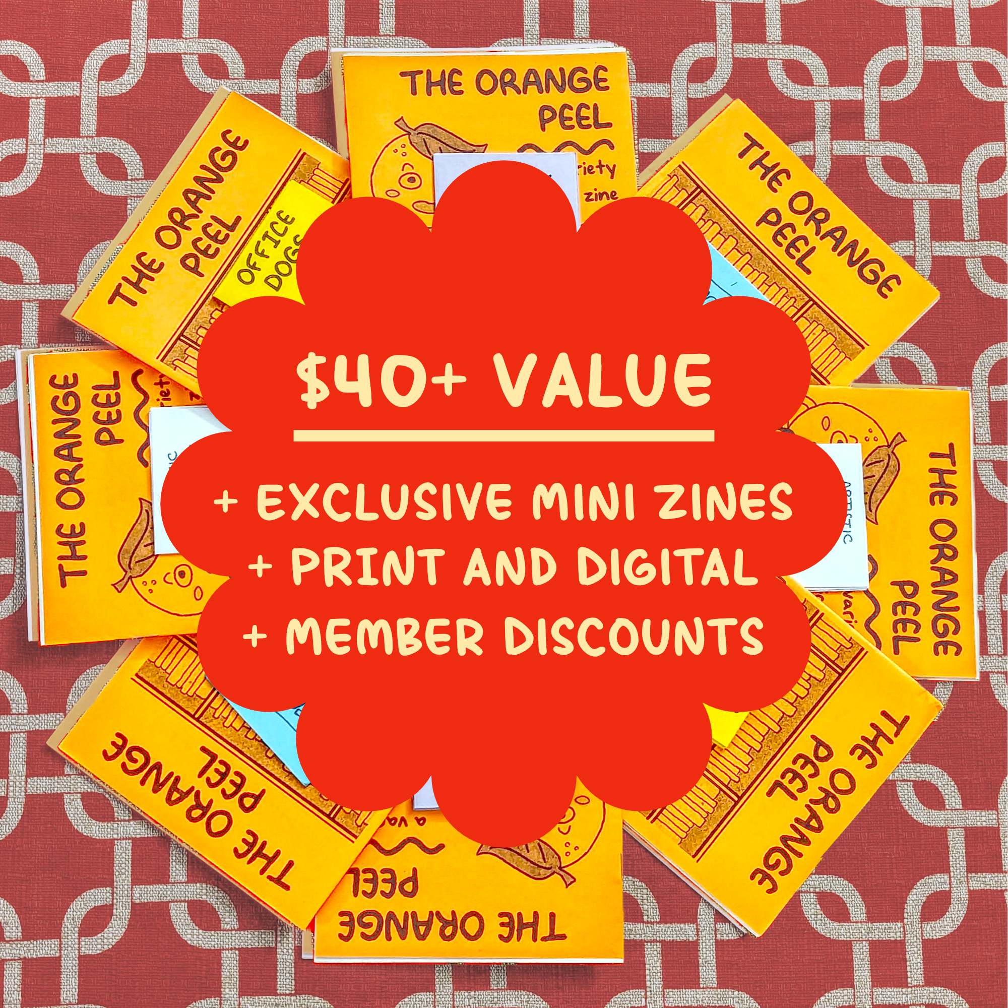 New from Fresh Press Comics Co! Buy an annual subscription to The Orange Peel, our quarterly comics zine, and get exclusive mini zines, digital access to all our back issues, and discount codes to the Fresh Press and House of Lief stores. This annual subscription is the perfect gift for the indie comics lover in your life.